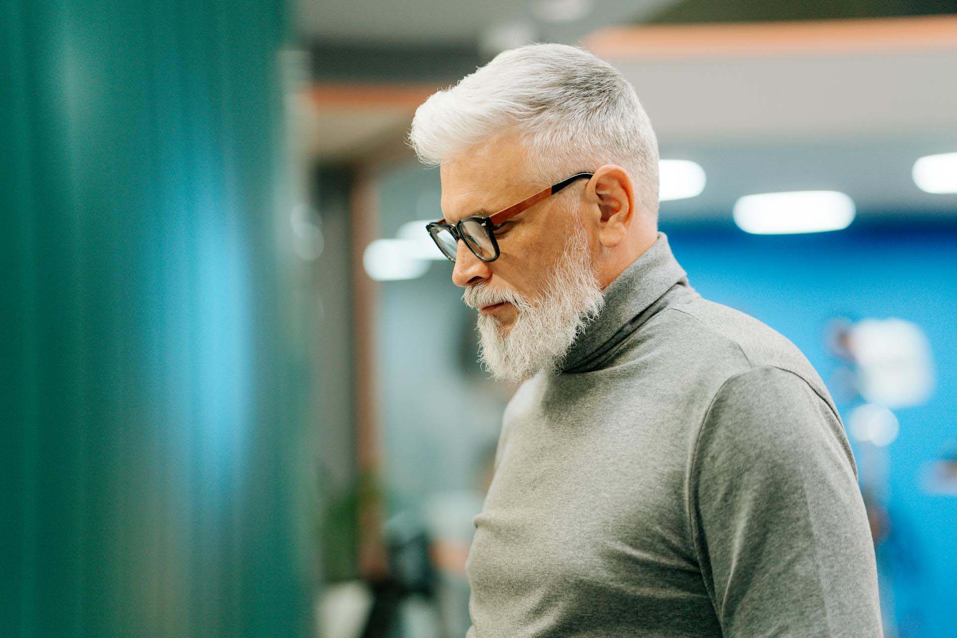 Salt-and-pepper hair with a beard can look incredible, but it needs balance: